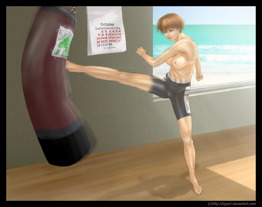 | Title: Sidekick Practice Creator: TGV A birthday gift from TGV. It seems that boxing gal fever has infected many peoples, including me and him. Anyway, it's nice to see Celine from another perspective apart of something strange on her shoulder & neck. |