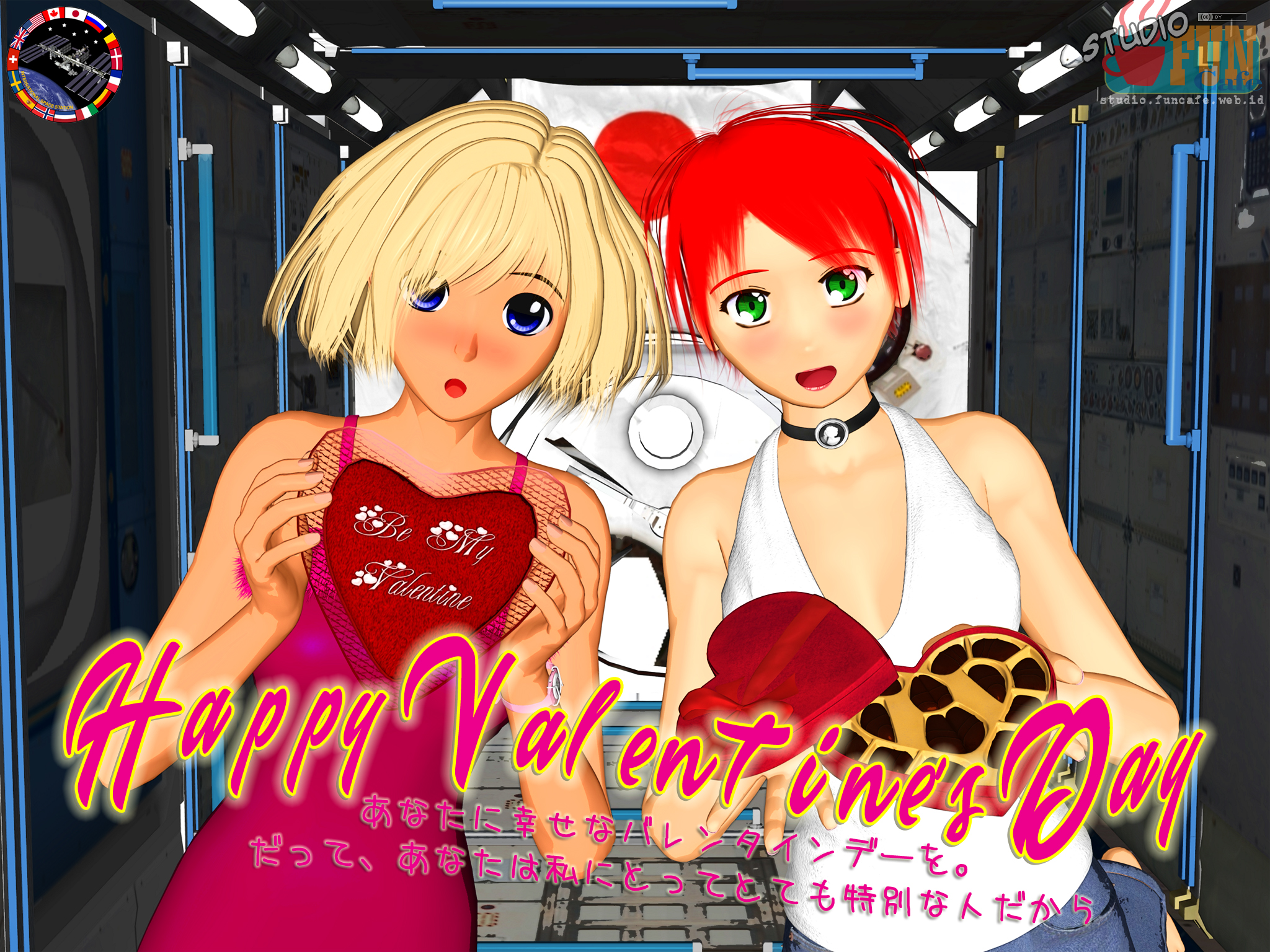 The 2021 Valentine Day's greeting card featuring Rina & Noa in ISS.