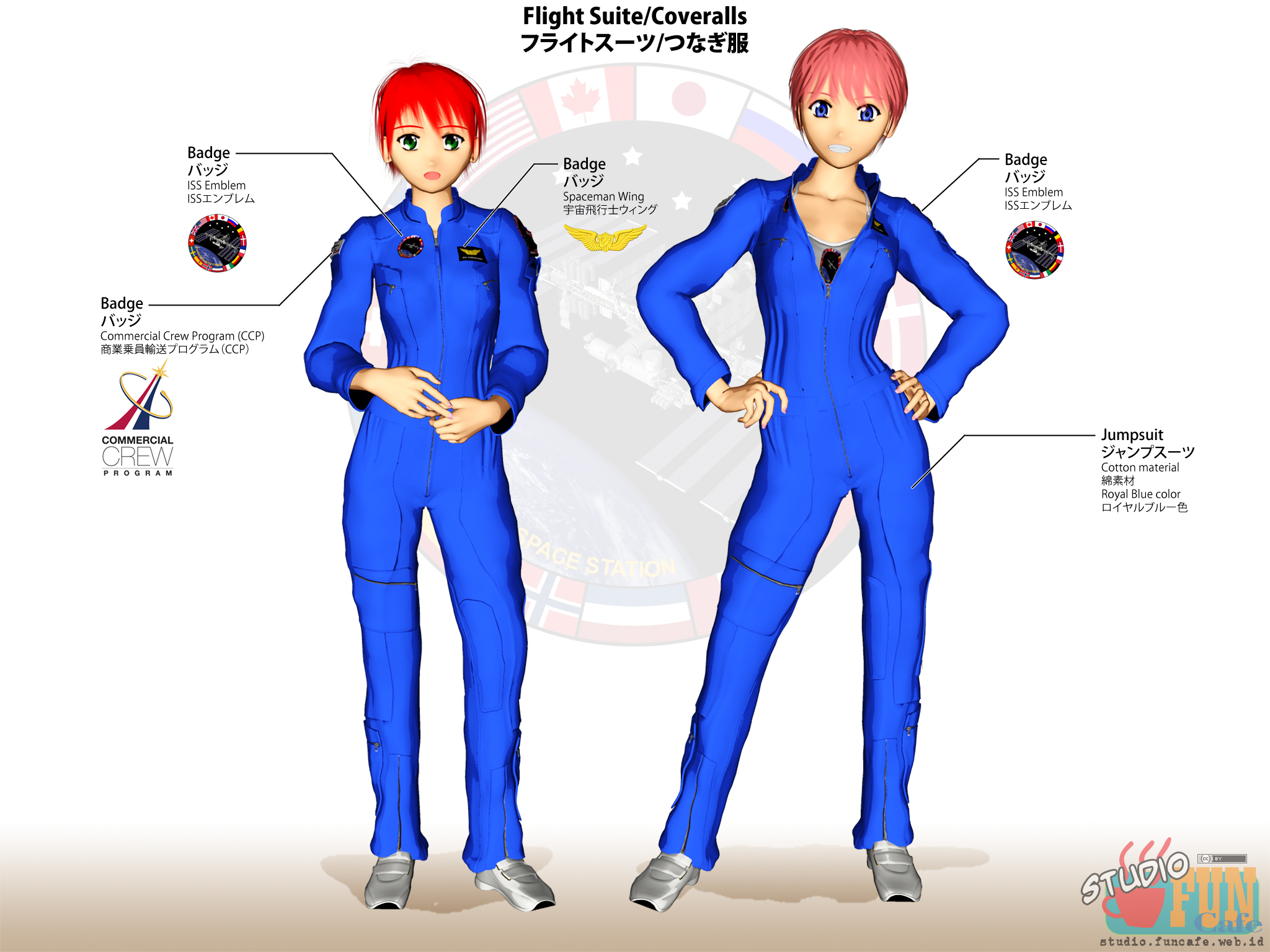| Title: Zero Gravity Overalls Finished: March 07, 2021 Technical reference of an outfit, all data is fictional. English & Japanese bilingual, for published in Pixiv Japan. These girls are part of the (fictional) future "Commercial Crew Program" (CCP) stationed on the ISS. |