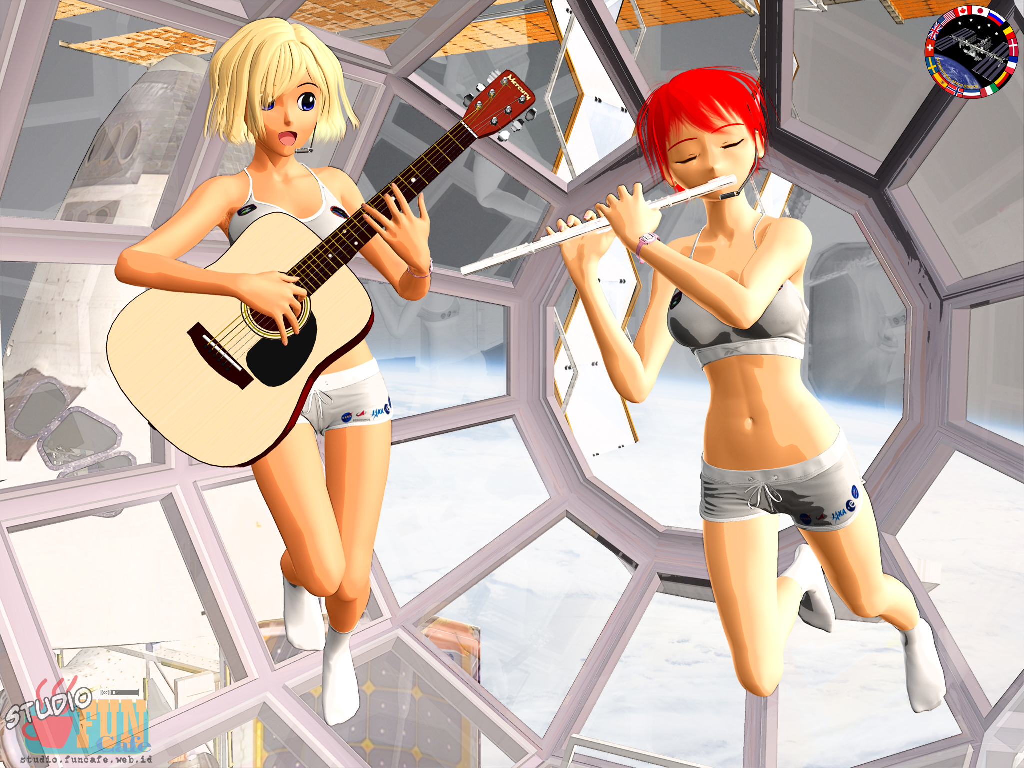 | Title: Zero Gravity Ensemble Finished: March 21, 2021 Flute and guitar duet, I wonder what song they are playing. This scene is quite heavy memory usage. The ISS model became very complex after addition of many additional modules. I have to delete some non-visible model on the second scene so it can fit another character. |