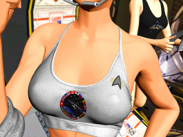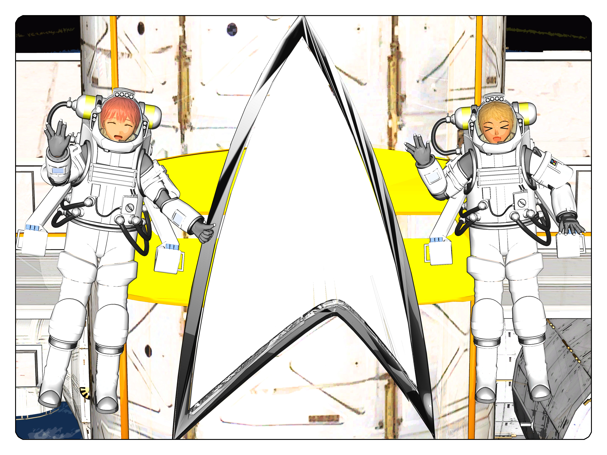 This is the continuing of the previous work. After finished installing the Starfleet emblem, our girls made a memorial photograph with the famous Vulcan salute: "live long and prosper!". This work also used to show my support on making "Star Trek Legacy" as the sequel of "Star Trek Picard". Hope they really make it into a show.