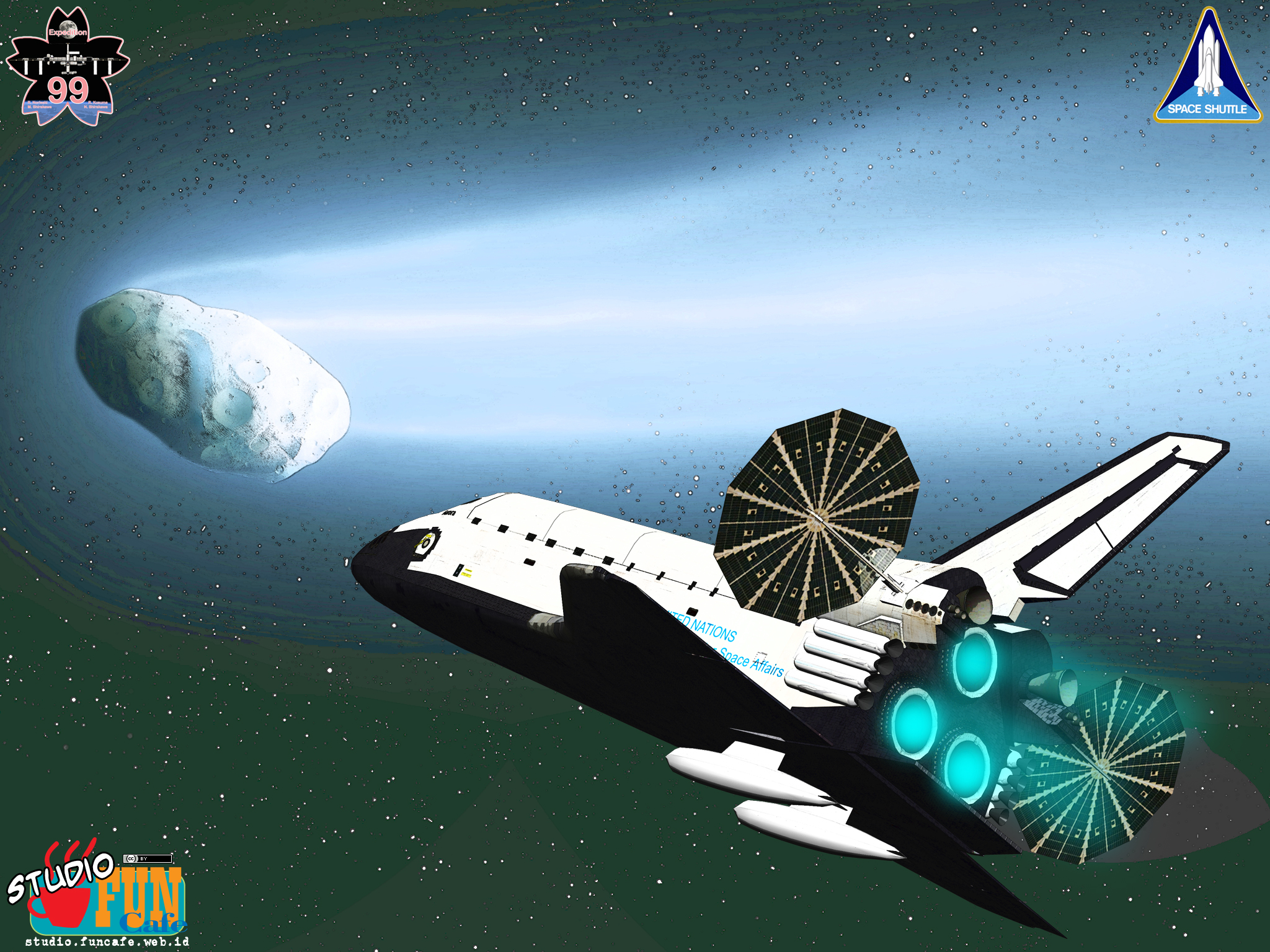 | Title: Chasing a Dream Finished: January 27, 2024 In the past, many unmanned mission conducted to explore comets up close. Those missions broght many valuable informations regarding this majestic astronomical object. Today, Neo-Shuttle was sent to explore a comet. This would be the first manned mission to a comet ever conducted. This girls are the most skilful spacecraft pilot in the team, so they've assigned to fly the Shuttle as near as possible to the comet. This is the most daring and dangerous mission they ever fly, but knowing them, everything will be all right. The Neo-Shuttle are using UNOOSA insignia instead of NASA. I will talk about this later. |